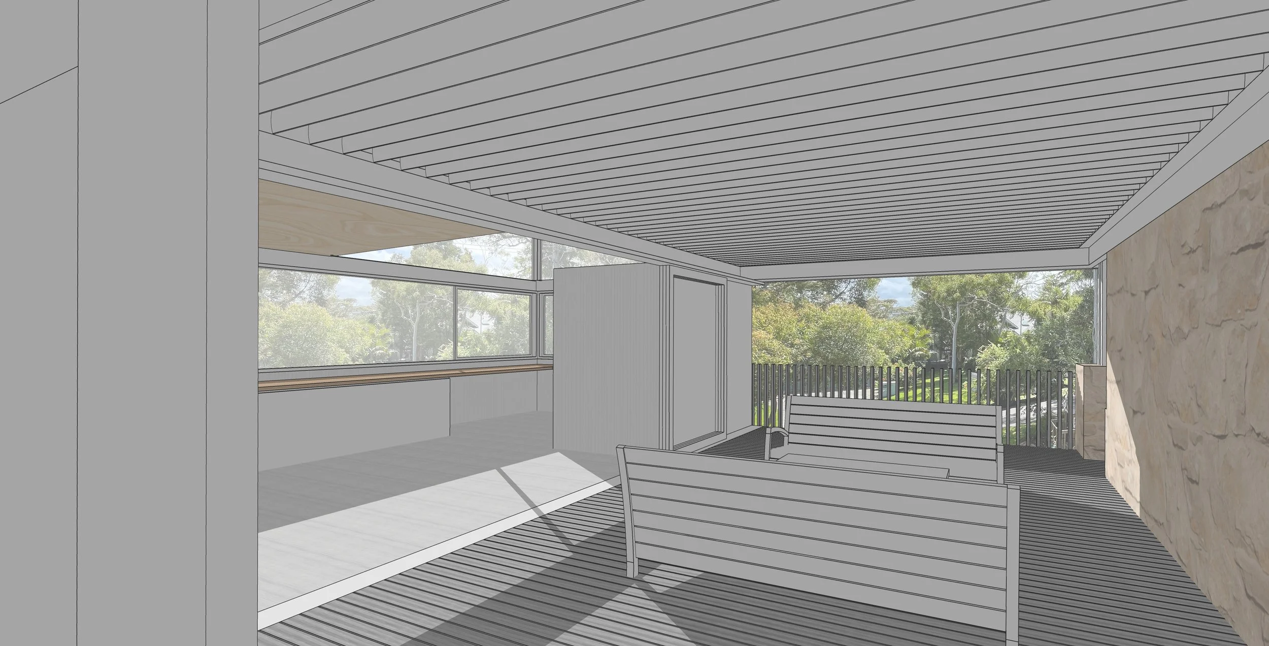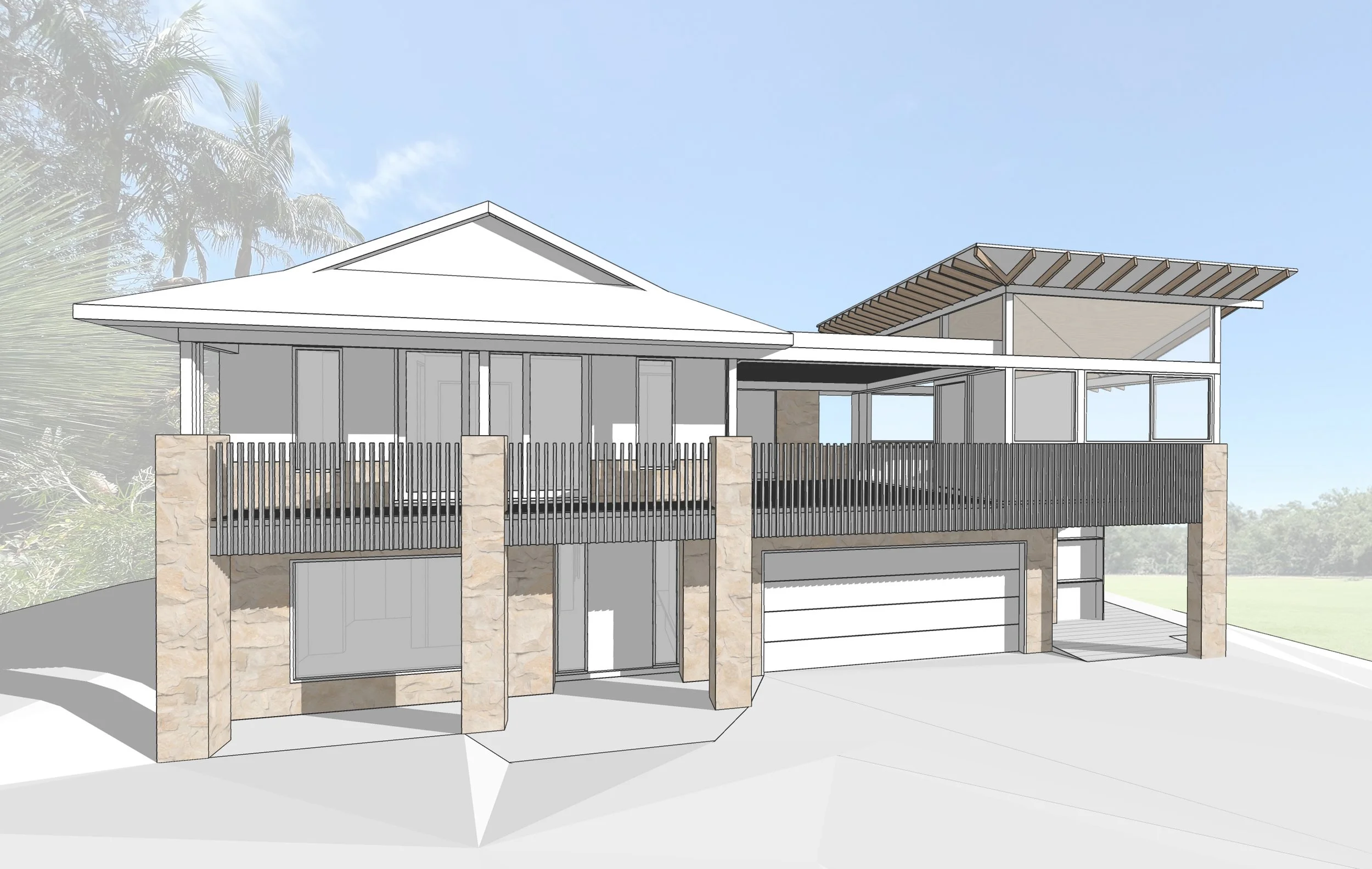 The brief was to renovate an existing project home, and replace the garage roof with a home office.